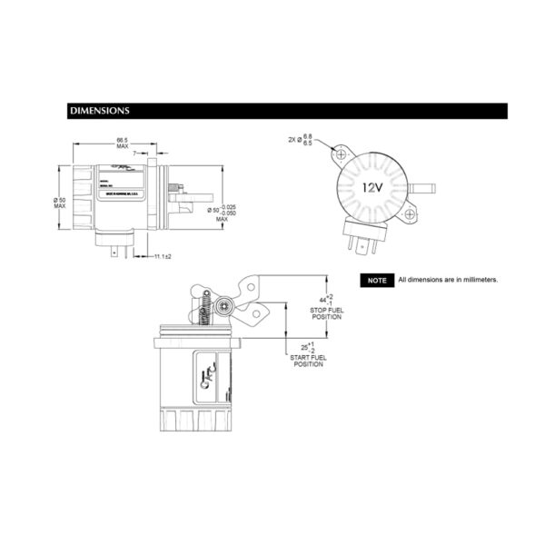 - Functions as a fuel shutoff solenoid when governor system is de-energized
