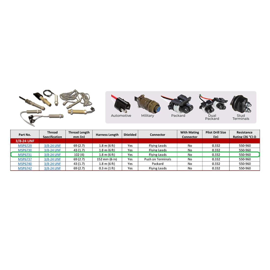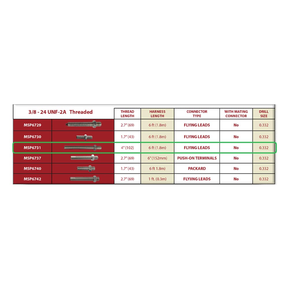 4 in [102 mm] Thread Length • 6 ft [1.8 m] Shielded Cable • Flying Leads • Stainless